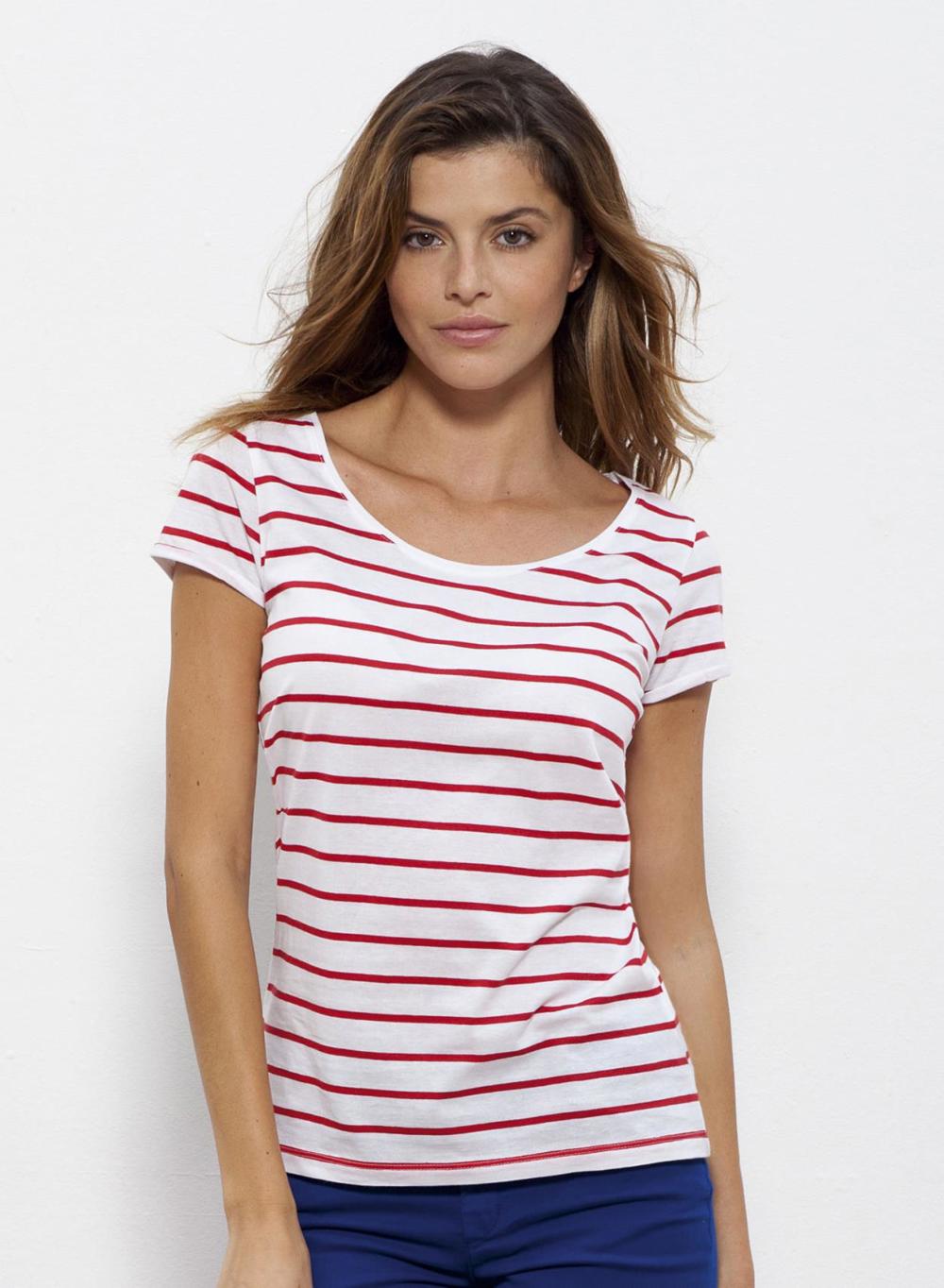 - Organic Stripped wide Round Neck Tee